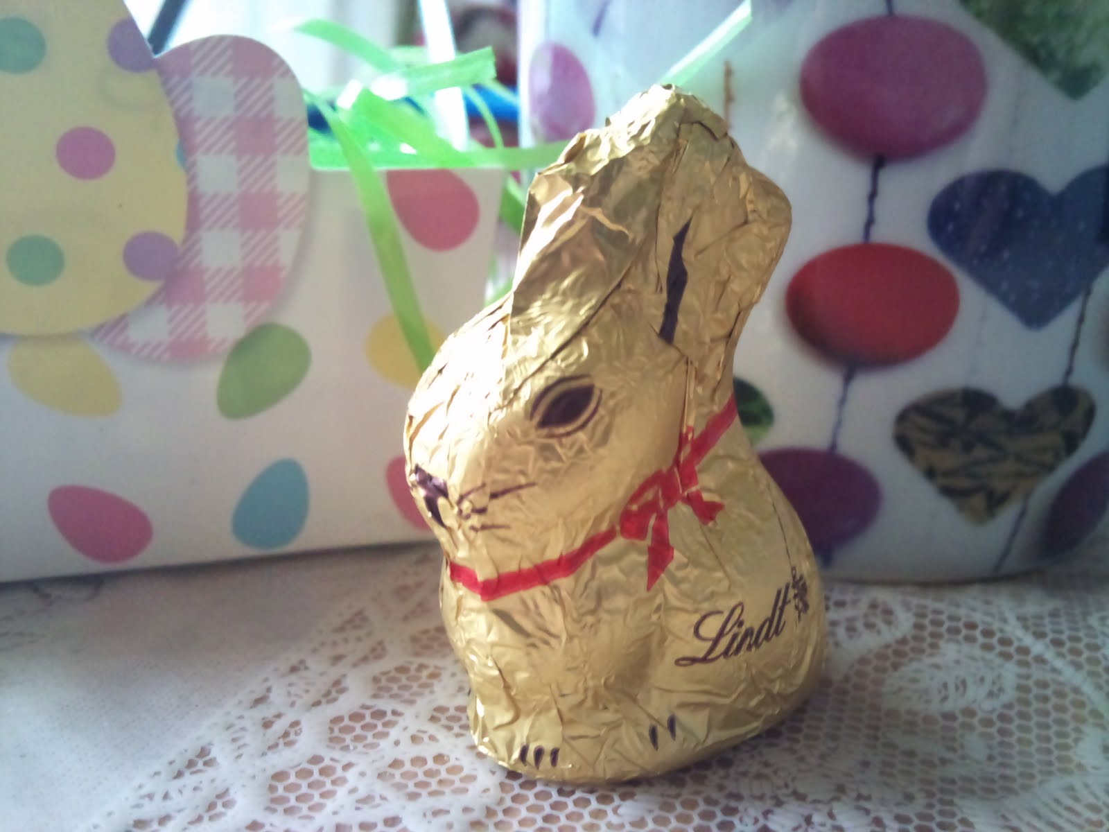 What better way to start the day - coffee in one of my favourite mugs, a cute little easter basket made for my lovely daughter by her lovely friend and a visit from the Easter Bunny!